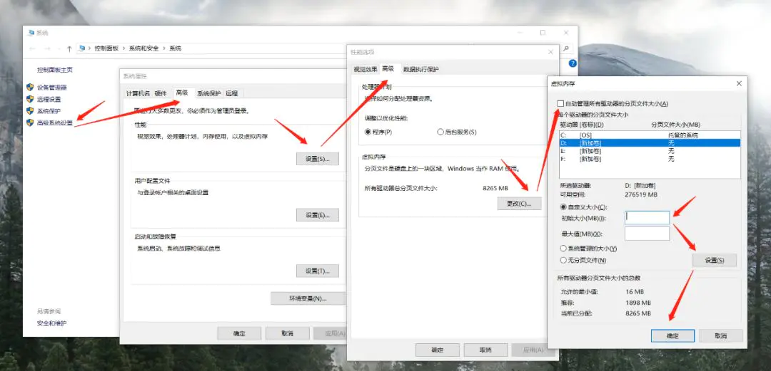 虚拟内存放在 C 盘也有点占用空间,不如放到其他空间更大的盘里去。