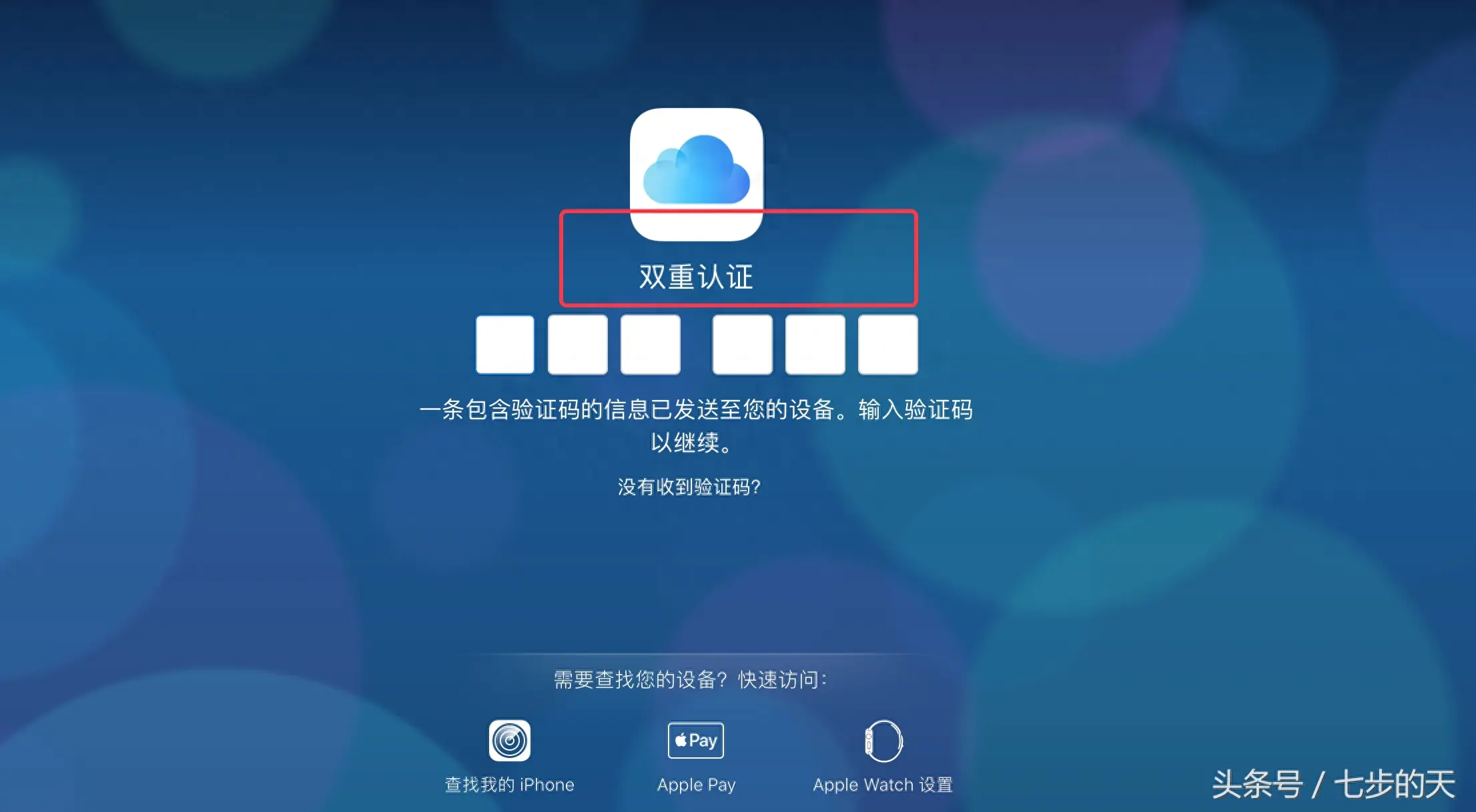 7、在浏览器的“双重认证”界面输入Apple ID验证。如图