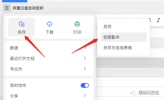 左上角 【三条横杠】-【另存】-【创建副本】