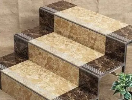 楼梯踏步最开始都是使用瓷砖来进行装饰的,一般一个台阶是三块或者五块瓷砖组合,后来开始出现了仿大理石的瓷砖,大多数采用一长两短的双色组合,当然这些都是在大理石还没有普及的时候。说了这么多,其实就是一句话大理石台阶,楼梯踏步能够使用大理石那就没必要采用瓷砖,因为……
