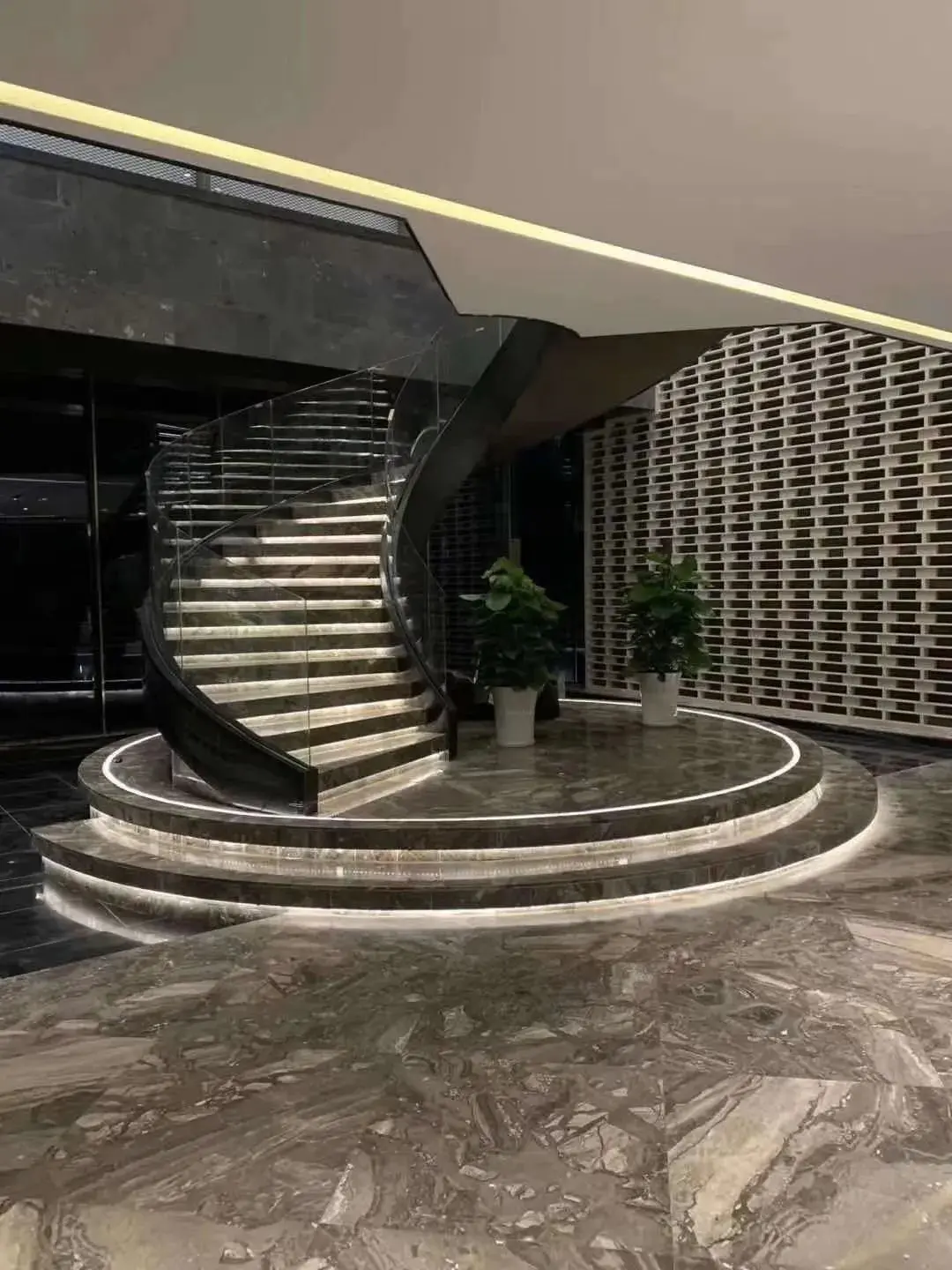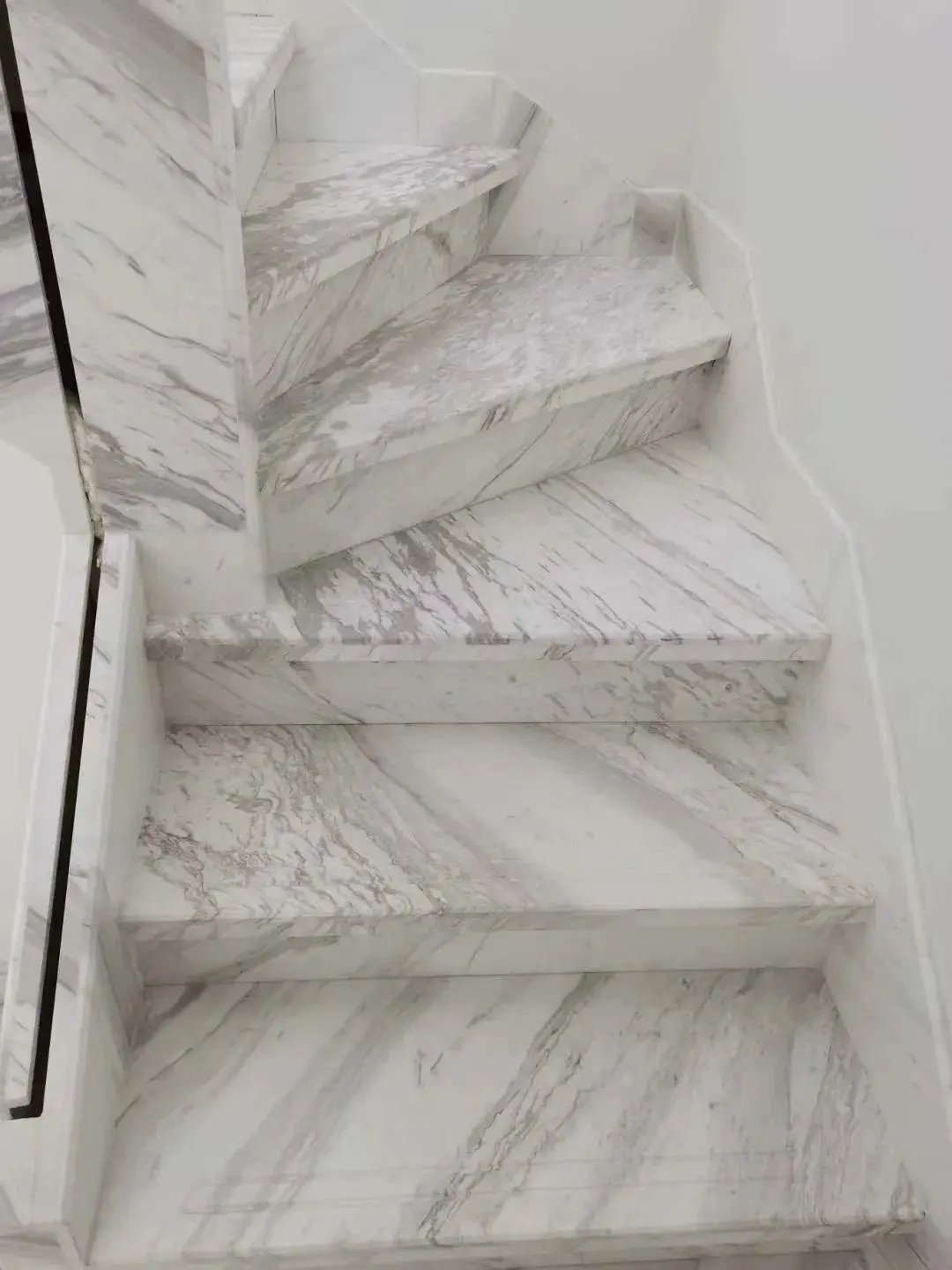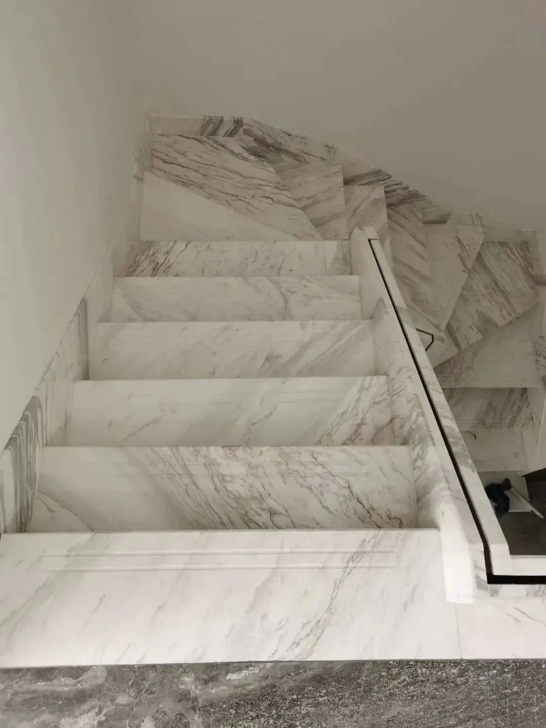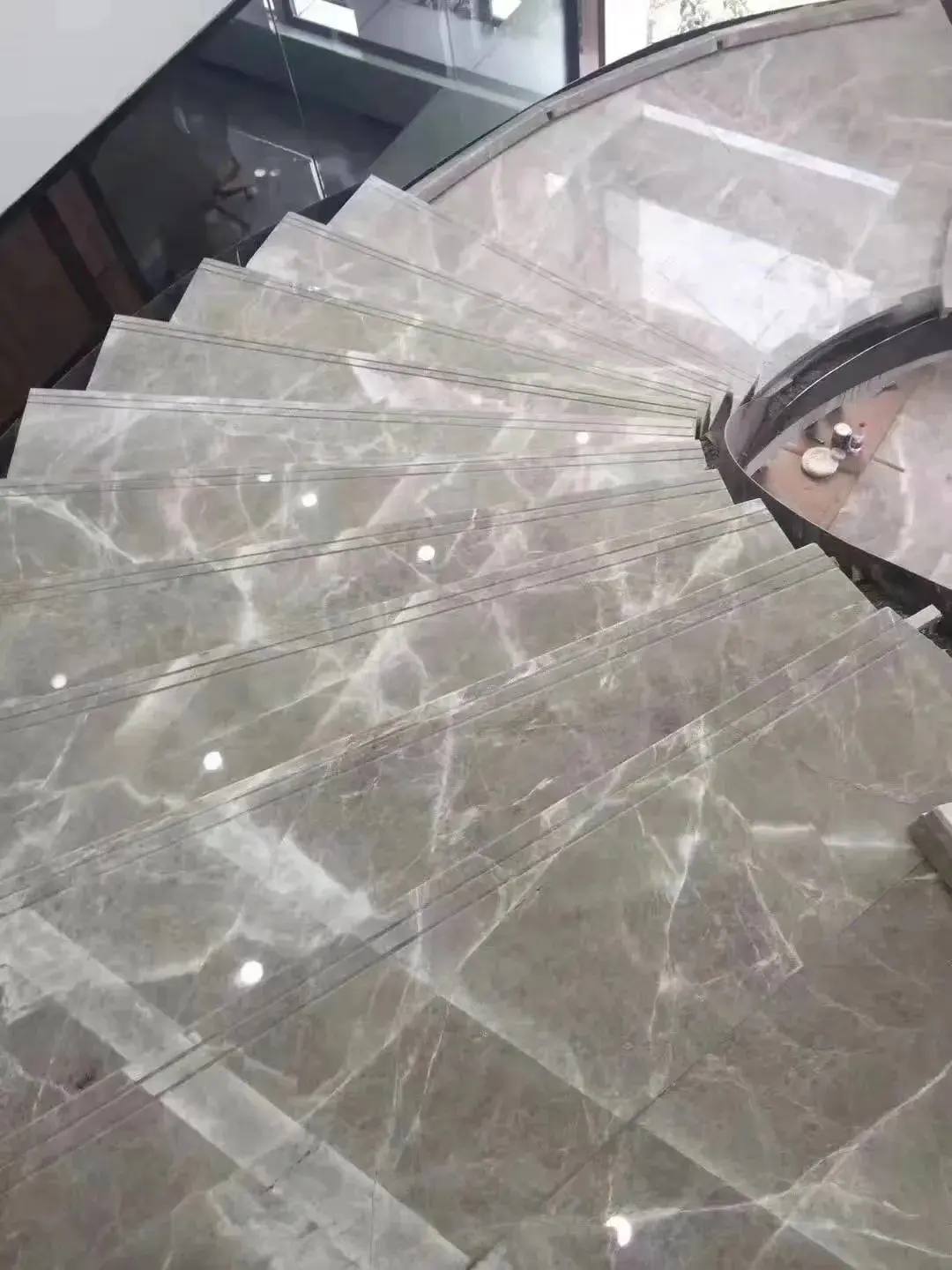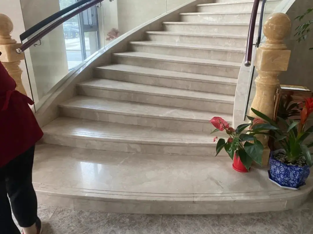大理石不同于地板砖,大理石的纹理通体都是一样,即使是加工成各种形状也不会影响表面质感,所以更有利于楼梯倒角等各种工艺操作。而且当我们的大理石踏步使用时间太久失去光泽之后,我们可以随意的打磨翻新抛光,使楼梯踏步看起来又跟新的一模一样,而瓷砖却不可能采取有这样的操作,旧了烂了都只有重新装修。