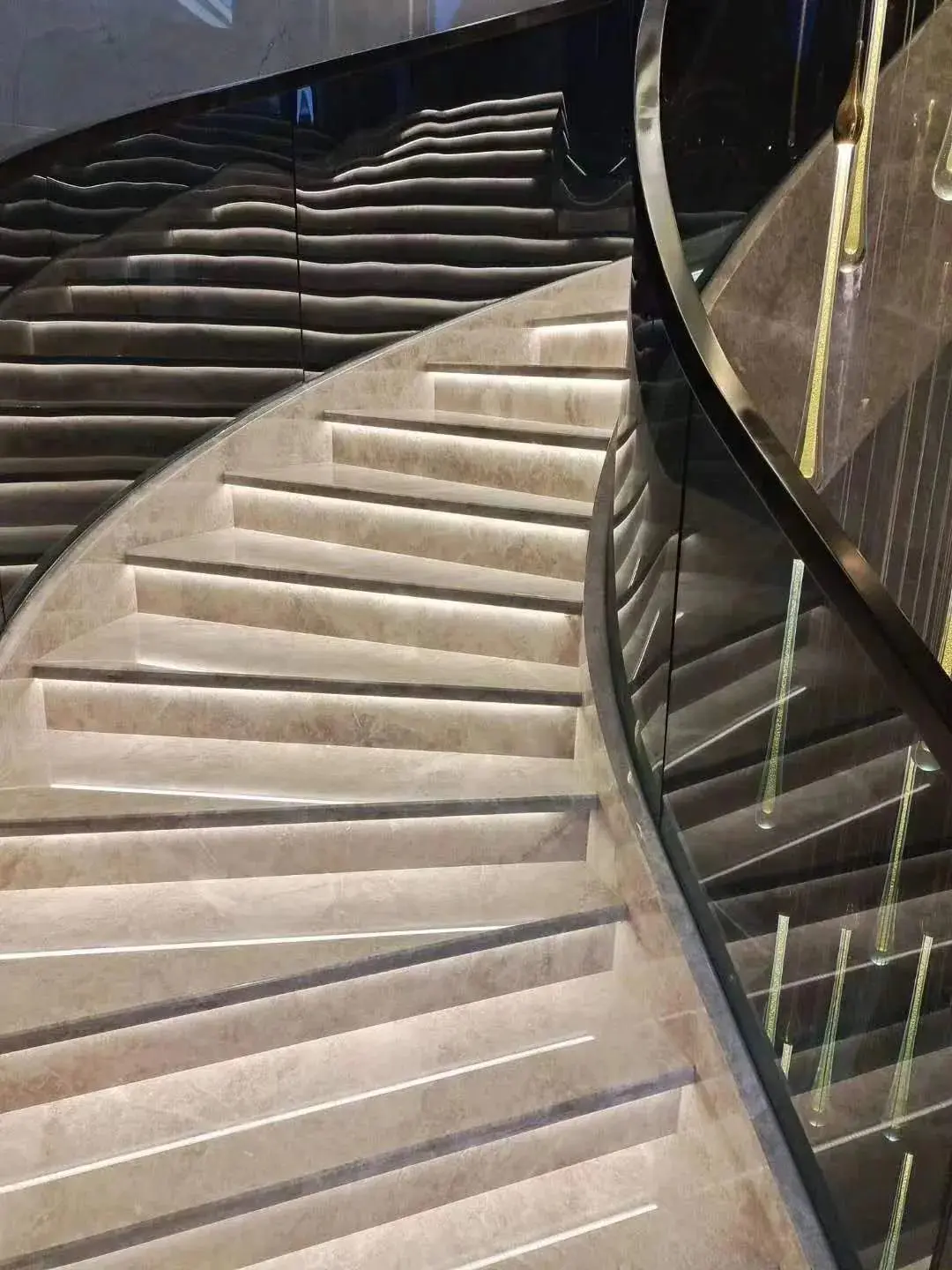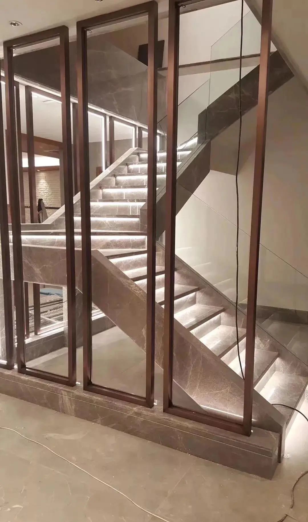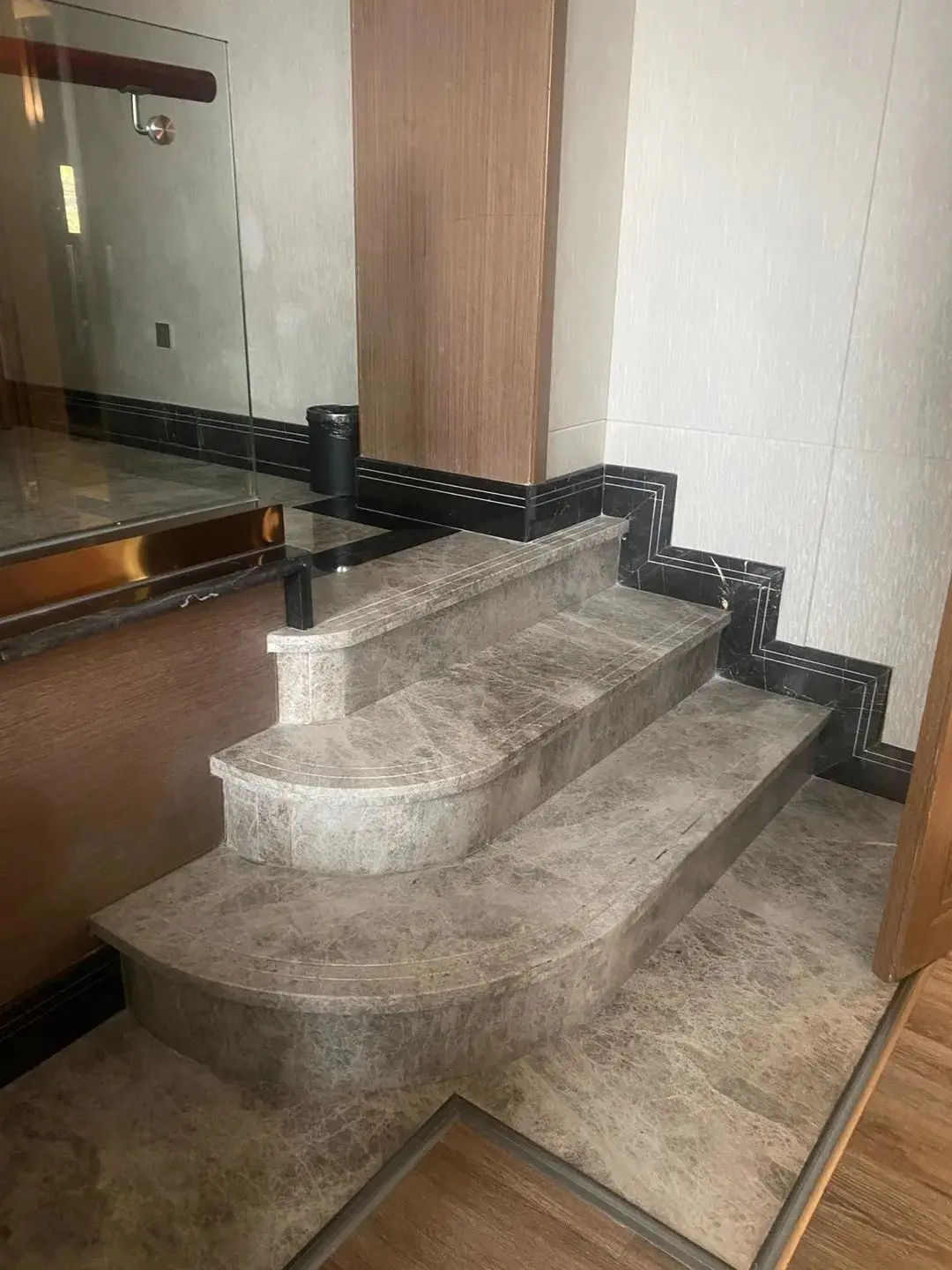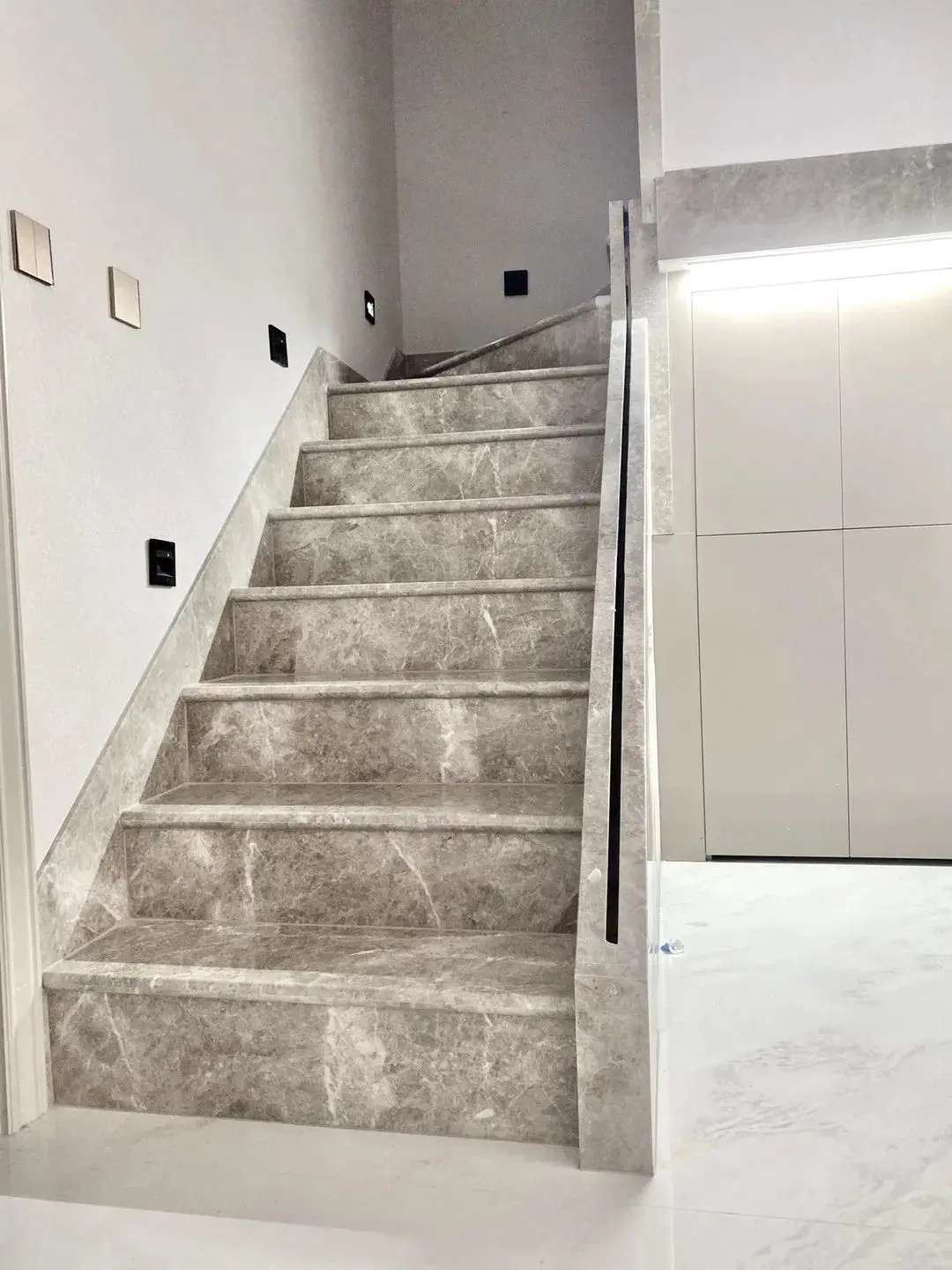 大理石不同于地板砖,大理石的纹理通体都是一样,即使是加工成各种形状也不会影响表面质感,所以更有利于楼梯倒角等各种工艺操作。而且当我们的大理石踏步使用时间太久失去光泽之后,我们可以随意的打磨翻新抛光,使楼梯踏步看起来又跟新的一模一样,而瓷砖却不可能采取有这样的操作,旧了烂了都只有重新装修。