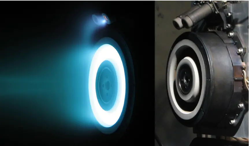 苏联研制的SPT-140型霍尔推进器,图片来源:NASA/JPL-Caltech(左),Maxar Technologies(右)