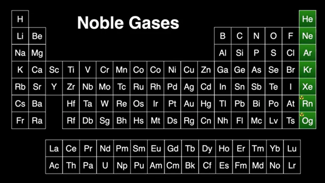 元素周期表中的稀有气体(Noble Gases),氙(Xe)之后的稀有气体元素不再具有稳定同位素