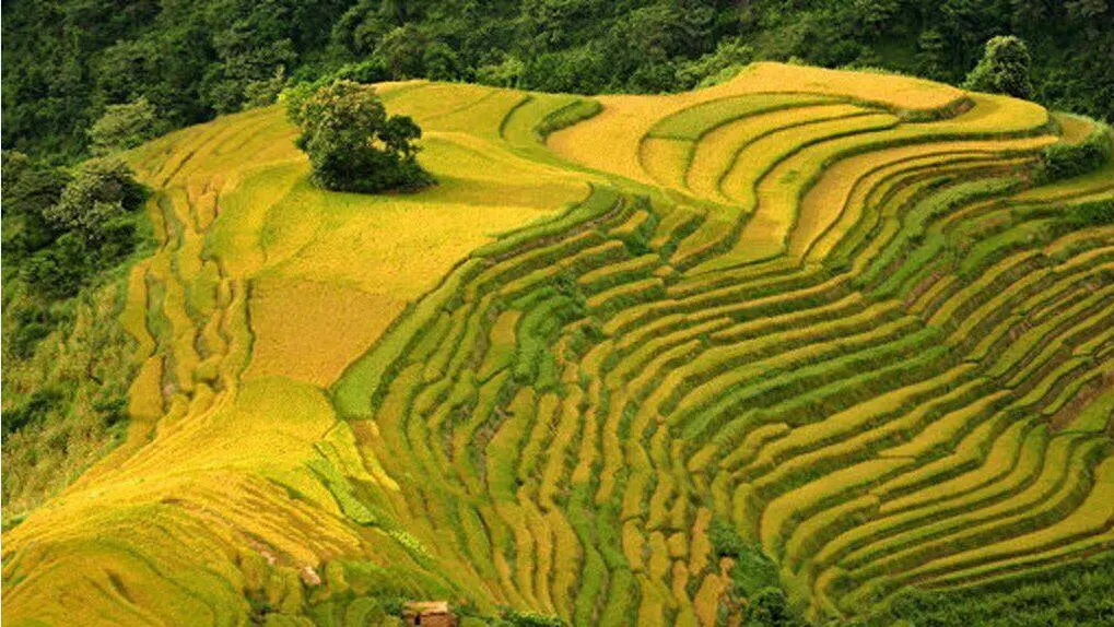 秋季的哈尼梯田,到了丰收的时候,梯田让稻谷铺上一层黄金。在路边遇到收割的农户,可以到田里体验一把打谷子的劳动,在田里抓鱼也是个特别放松心情的方式。