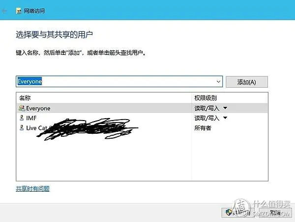 选择用户添加,然后点击下方的共享(没有就创建一个用户)