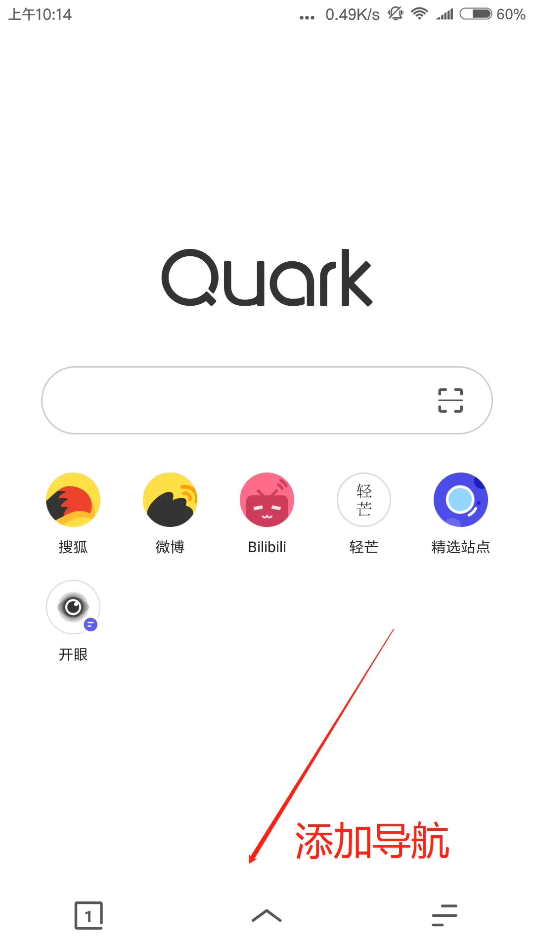 打开软件,你可以发现启动速度超快,界面设计感十足,简洁大方又实用,点击底部的上拉菜单可以自由添加导航,快速搜索夸克浏览器在线网站,一键直达(常用百度搜索的小伙伴们可以发现夸克浏览器在线网站,你百度出来的信息,前面几条基本上都是一些无关紧要的广告);