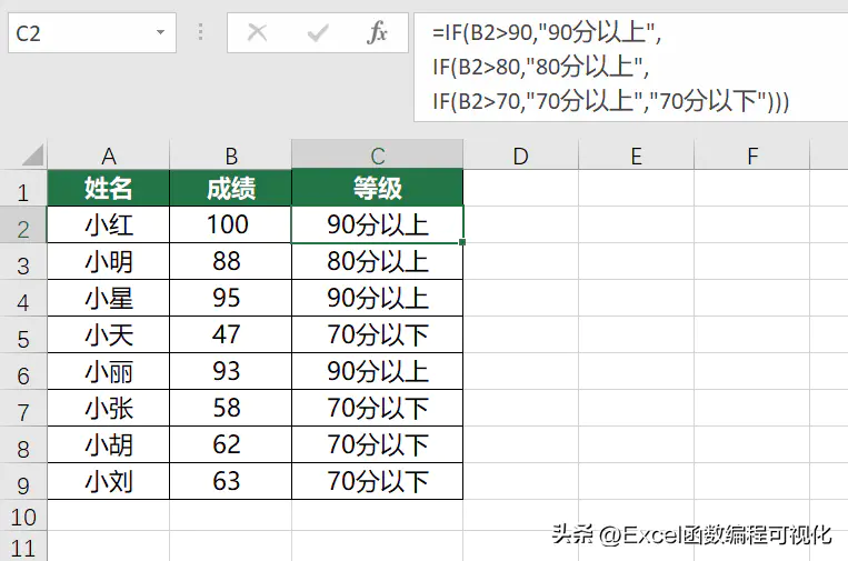 说到IF函数,就不可避免的涉及到IF函数的嵌套问题。
