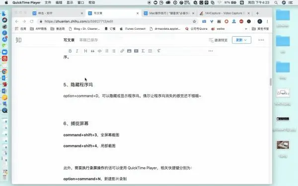此外,需要执行录屏操作的话可以使用 QuickTime Player,相关快捷键分别为: