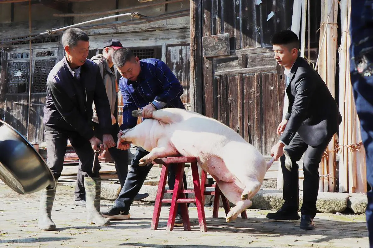 这个在农村长大的是最熟悉的,以前到了年底杀过年猪的时候,那可是一件非常喜庆的大事,还要邀请亲戚、邻居们一起来吃杀猪饭。