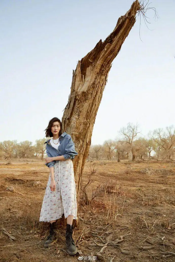 比如现在这个季节,好多女孩都想入的碎花裙,刘雯就会拿来和牛仔单品一起穿,把印花可能有的繁复感压下去,变得实穿。
