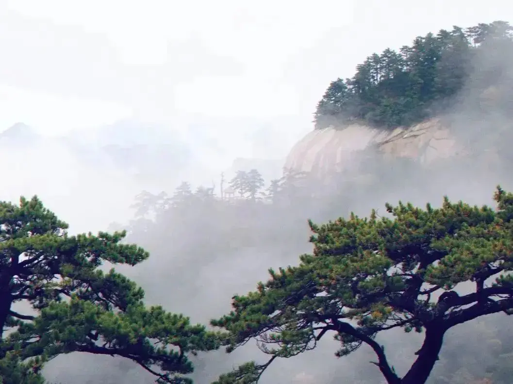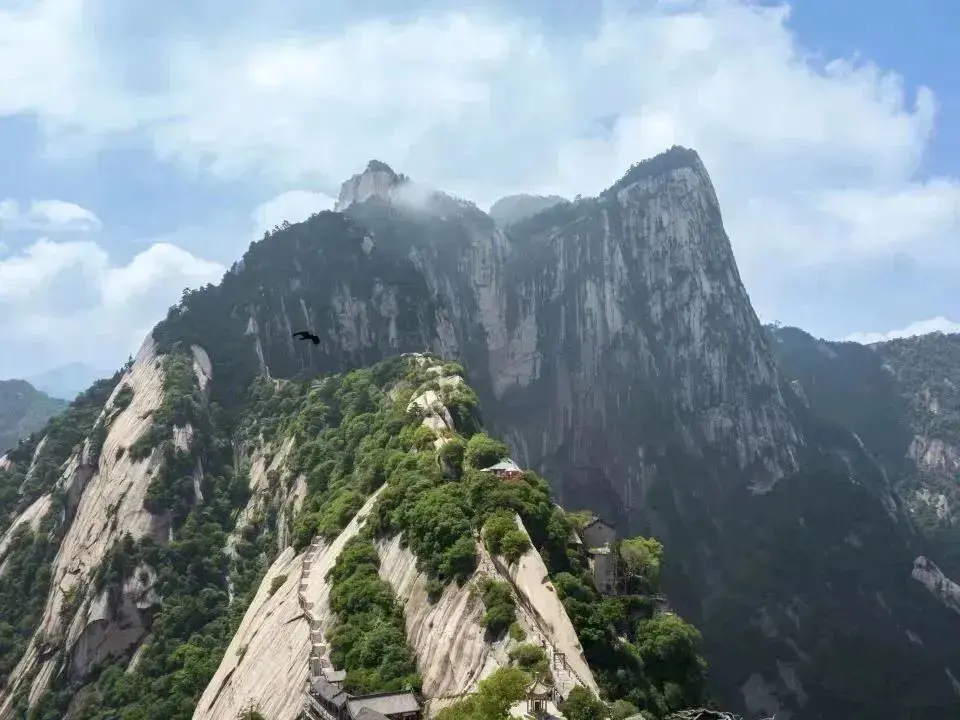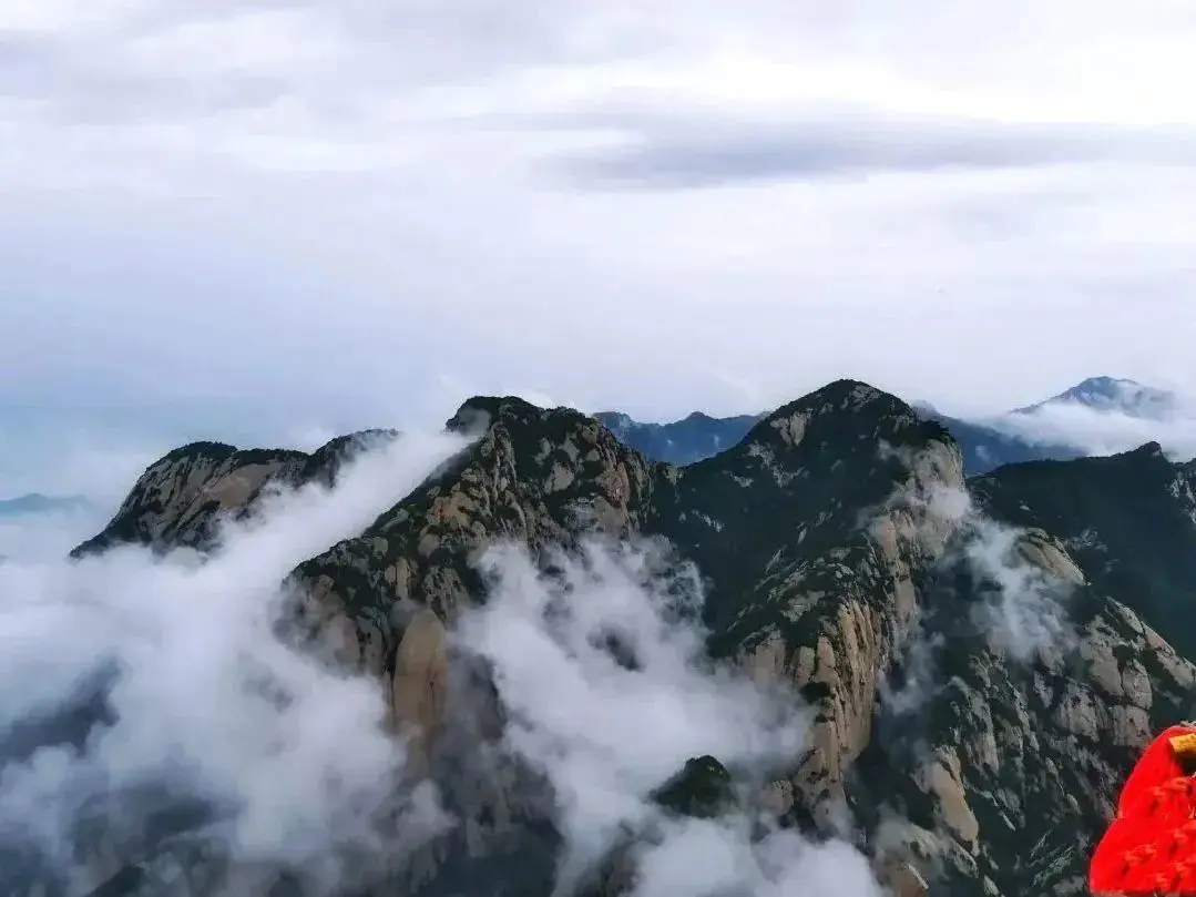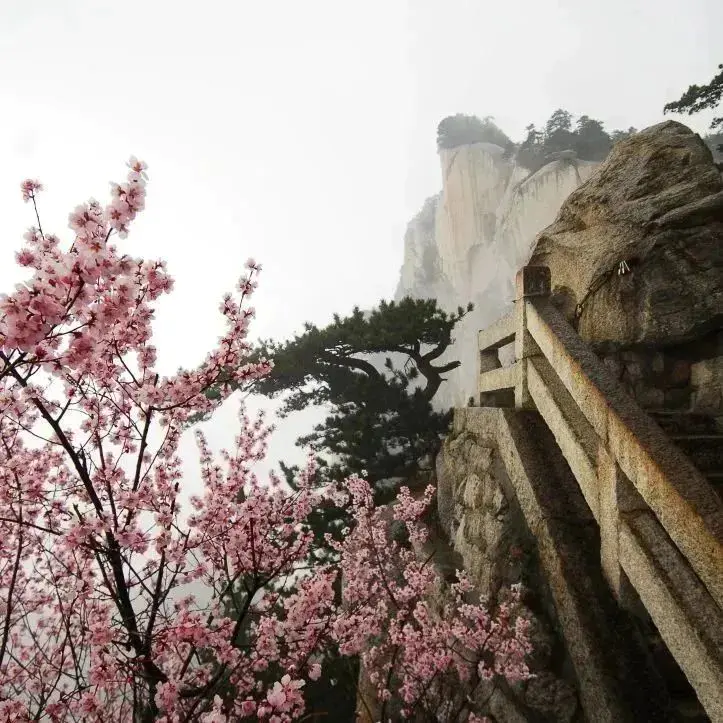 四月的华山,在烟雾中轻轻地流淌,徐徐铺展而来,淡淡的春光画卷等待你的开启。