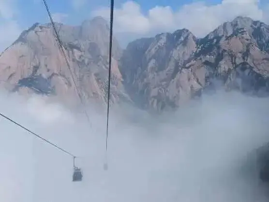 蓝色的天,白色的云,淡淡的雾,绿色的树,灰白色的山体,陡峭悬崖峭壁,直插云霄的连绵山峰……这一切组成美景的元素,被山风吹动着华山免费,不停息地分散又结合,上演着山云之恋。