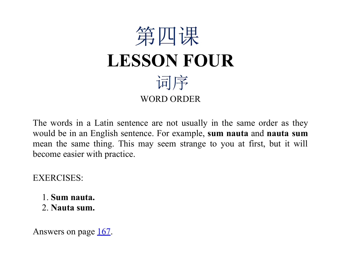 这一课的重点是介绍:拉丁语中,sum nauta和nauta sum的意思是一样的。