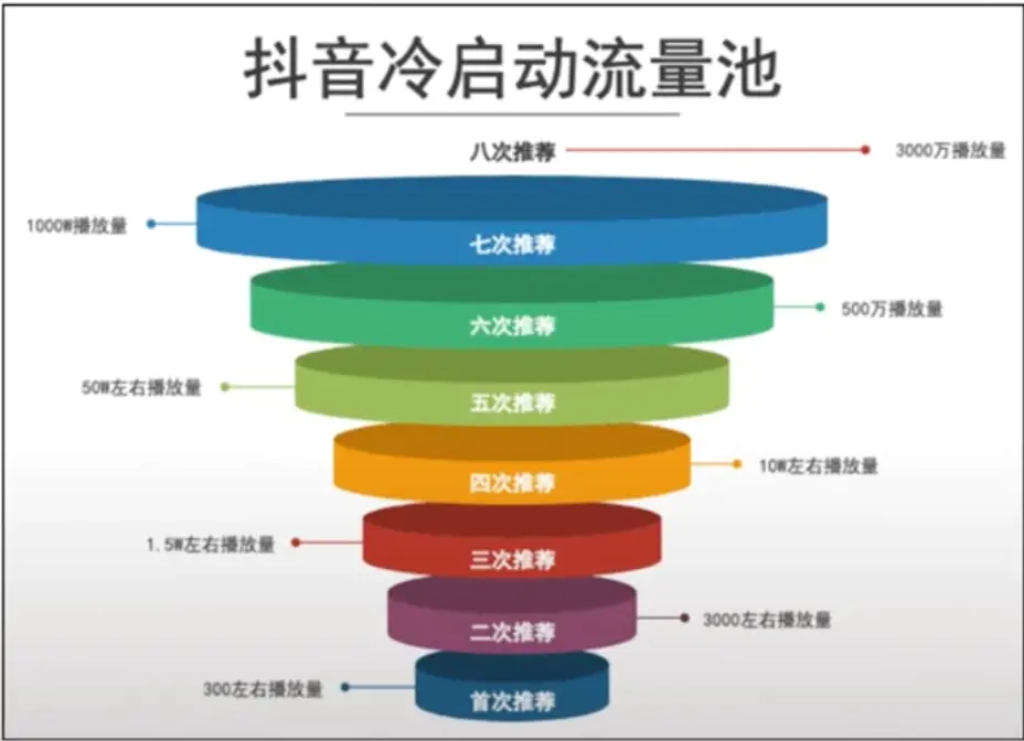 在讲之前抖音首页,大家要知道,抖音这个平台给每个视频分配了8个流量池:下面这个图看不清楚的可以点开放大看看: