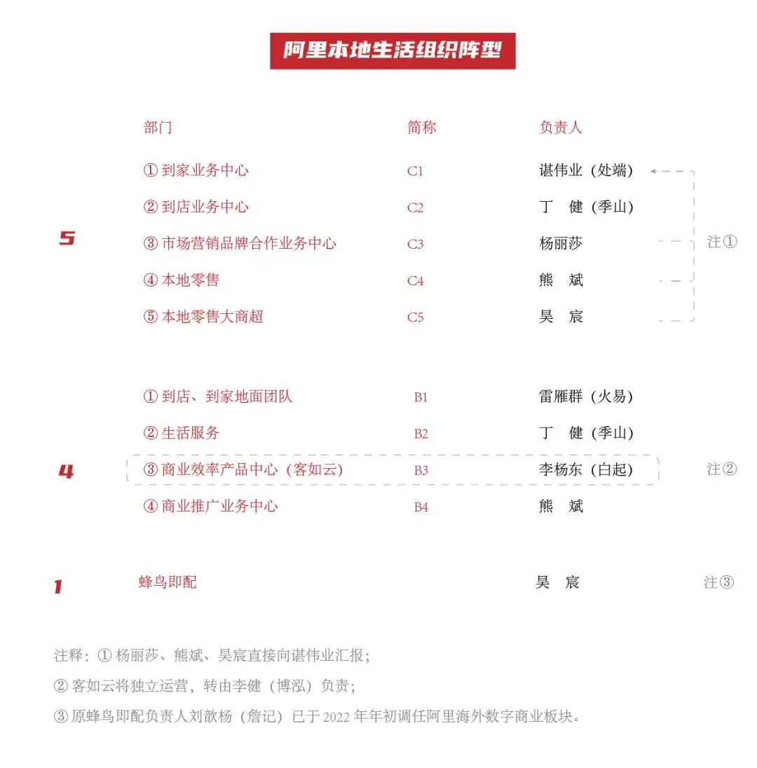2021 年 7 月,在俞永福接管本地生活之前一个月,原阿里同城零售事业群总裁李永和(花名:老鼎)接替王磊负责本地生活。同城零售事业群的业务一分为二,天猫超市业务被分出来与进出口事业群合并,同城零售事业群保留淘鲜达和本地生活的新零售团队,继续由李永和负责。