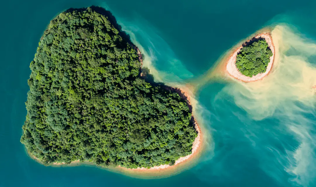 夏天的庐山西海有着别样的浪漫风情,就连小岛都“长成”爱你的模样。