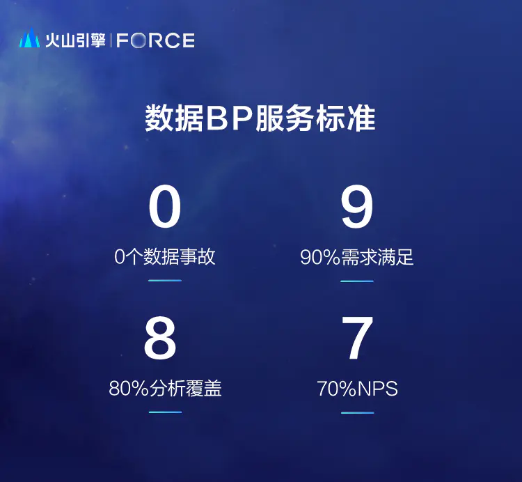 最后这个7,指的是70%的NPS,这在行业里是一个很高的标准,代表业务满意度的一个评价。我们要能够通过这个指标,去发现数据服务环节中的各个问题,来提高业务的满意度。