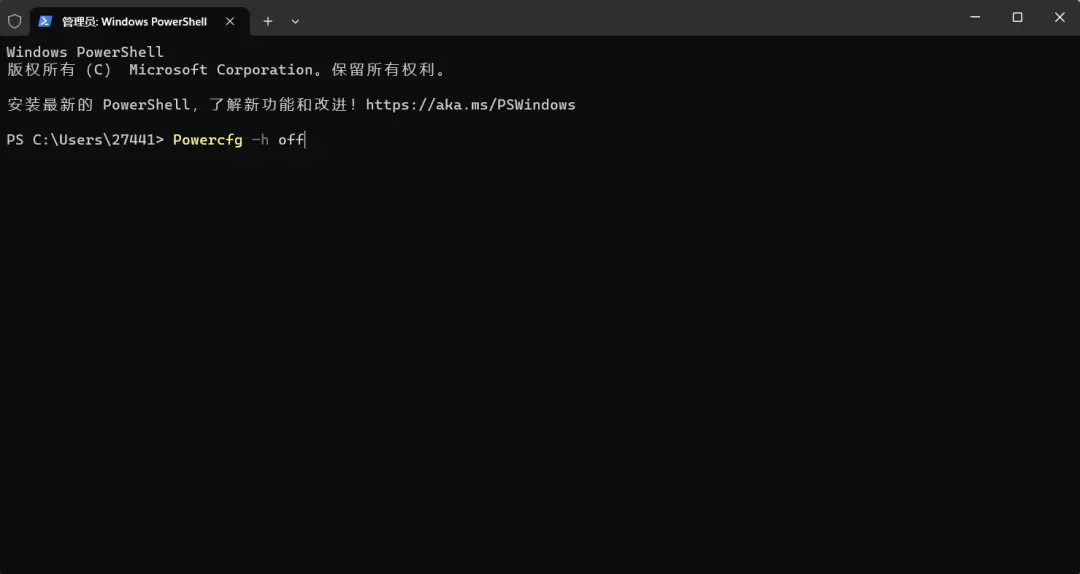 Powercfg -h off   //关闭Powercfg -h on    //打开
