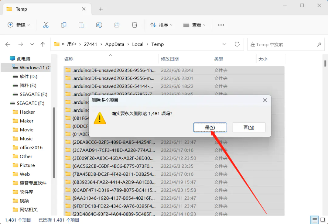 打开C:Users用户名AppDataLocalTemp目录,直接永久删除所有文件和文件夹(永久删除的快捷键是Shift+Delete)