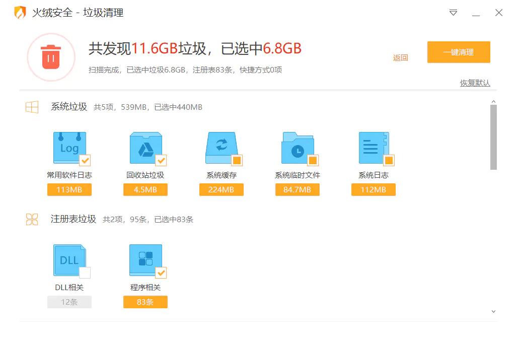 系统运行久了也会产生许多垃圾清除c盘垃圾的命令,可以使用第三方软件进行清理(推荐火绒和360极速版——一定要是极速版)