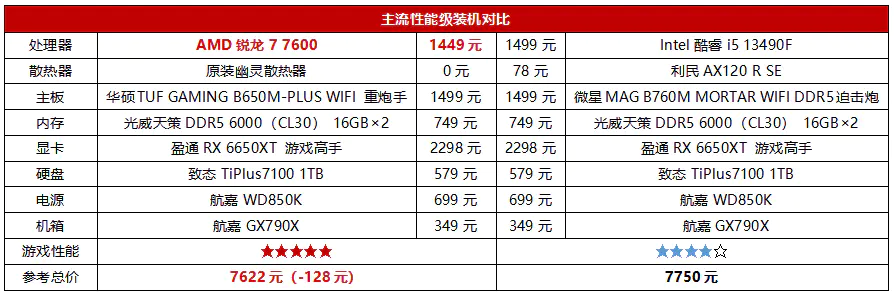 总结:主流游戏装机,选锐龙5 7600价格甜美性能同级无敌