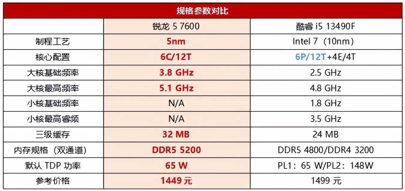 对于主流游戏玩家装机来讲,千元级甜品游戏U无疑是最受关注的产品,例如锐龙7000智酷家族中的锐龙5 7600。不过,Intel方面不久前也上市了针对中国大陆市场的酷睿i5 13490F专供版,相对普通的酷睿i5 13400F在缓存和频率方面小有提升,定价也与锐龙5 7600相仿,那么到底谁更值得主流游戏玩家选择呢?