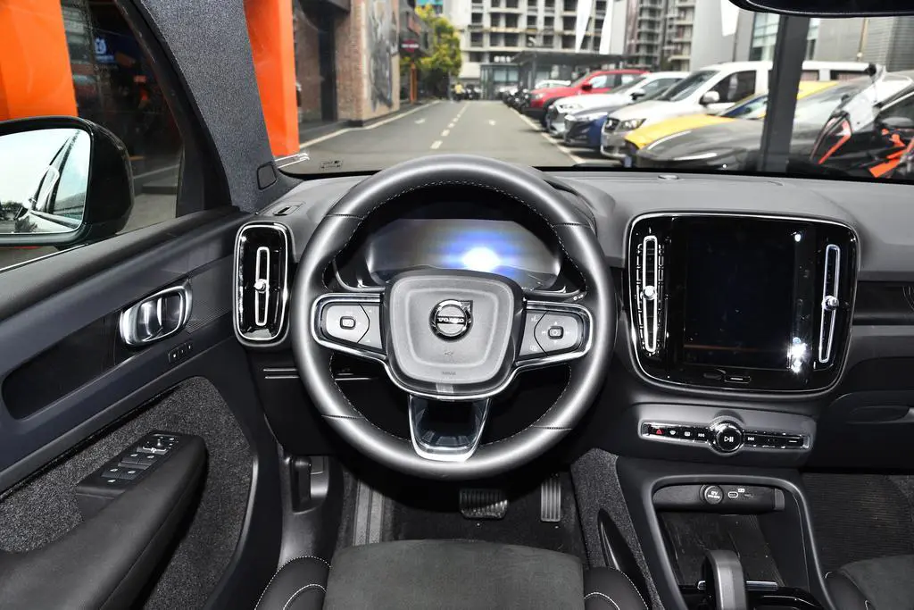 车内设计也是熟悉的沃尔沃设计风格,采用三幅式方向盘、内嵌式中控屏和电子挡把设计,内饰设计上跟油车的设计基本一致,其实C4O纯电版的内饰设计可以更多采用具有科技性和年轻化设计,先不说它的配置如何,最让人放心的是用料的选择,车内设计采用环保型材料,很多地方用的是翻毛皮材质覆盖,看上去更加上档次了;