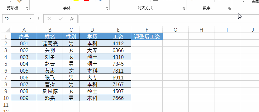 如果要把所有本科及硕士学历的工资加500,大专学历工资不调整,最后结果都显示在F列中,该如何写函数公式呢?