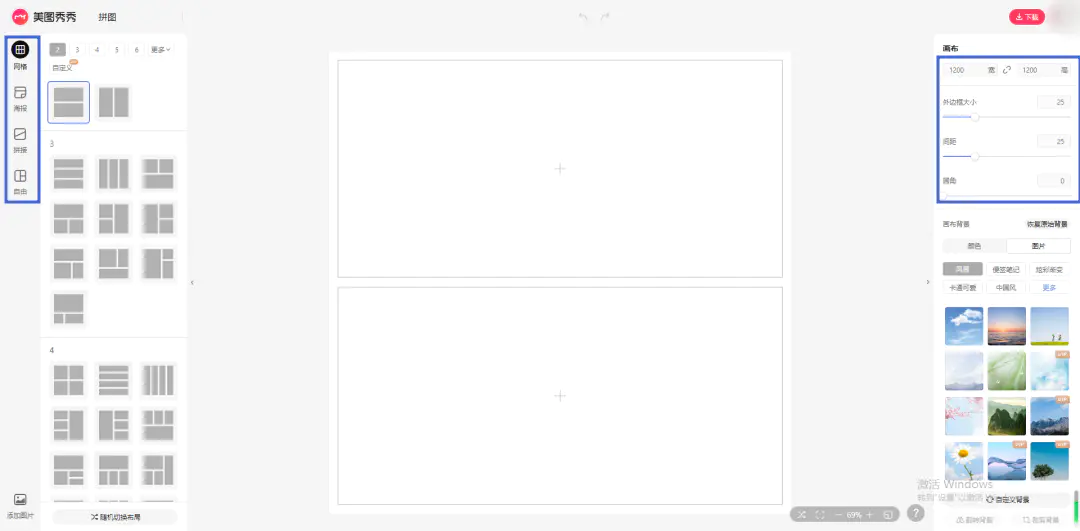 可以对拼图的背景、图片的数量进行相应的选择电脑p图软件哪个好用,有网格、海报、拼接等多种格式,非常方便使用。