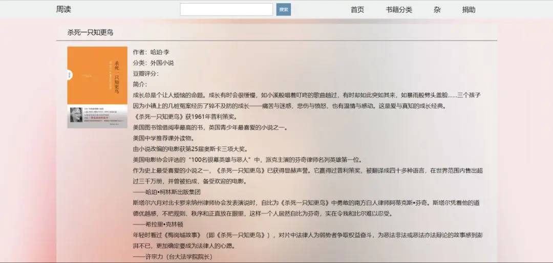 作为一个图书资源整合网站,周读不仅仅提供下载方式,同时也将图书的封面、作者、简介等基本信息放在网站上,阅读起来也更加直观。