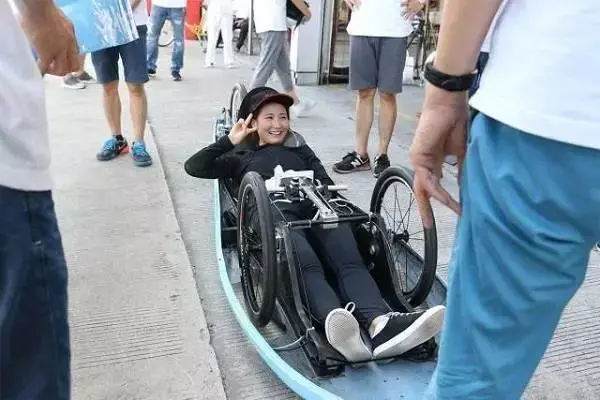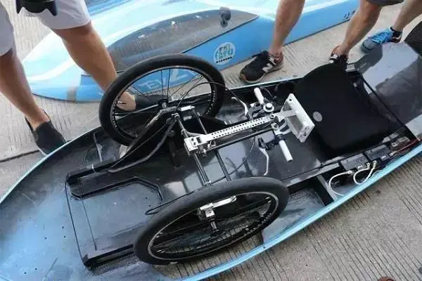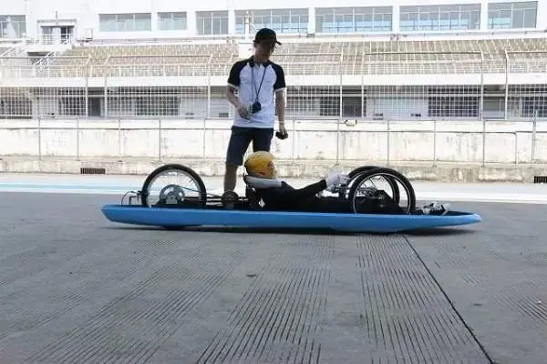 中间仅有一个座位,人正好能躺进去,而这辆车也没有普通汽车上的方向盘,操纵杆跟自行车一样采用把手式。