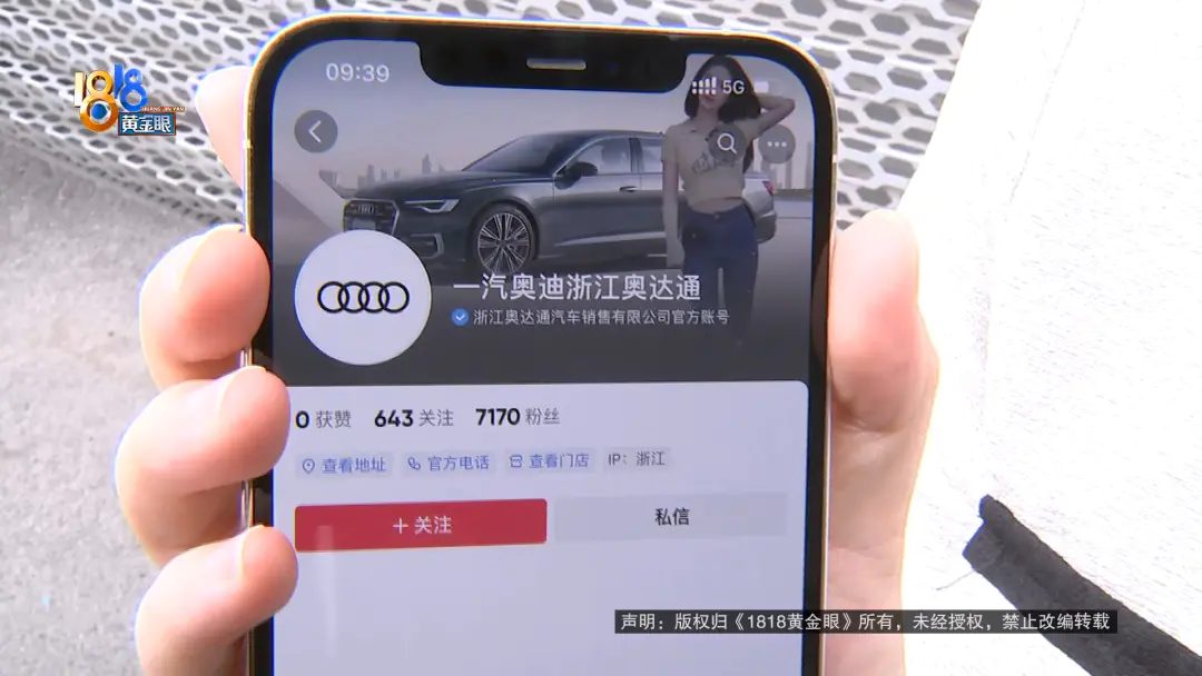 浙江奥达通汽车销售有限公司总经理助理 唐女士:我看了下录播和留言,中间的一些字眼确实是有我们不对的地方。处理方案是同一时间段直播的时间段,我们会公开地在直播上给她道歉,我会提前通知她。第二个赔偿的话呢,我们这边确实现金赔偿不了,我们给她赔偿一块奥迪原厂的运动手表,她同意了。