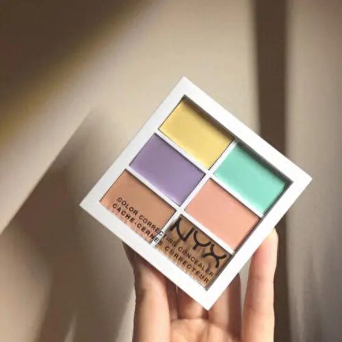 这款nyx遮瑕修容盘是一款网红产品,有好多个不同的颜色。其中:黄色修正茶色黑眼圈,调整整体皮肤色调,黄色遮瑕膏是最通用的,适合所有日常基础遮瑕需求。橘色/橘红色/橘桃色可以修正青色黑眼圈,蓝色黑眼圈需要用橘红色修正,蓝紫色黑眼圈需要用黄+橘的橘桃色来修正,紫色黑眼圈需要用黄色来修正。绿色可以修正脸部发红的皮肤,比如伤疤、痘痘、鼻翼两旁和发红脸颊。紫色可以修正暗黄、暗沉肤色。