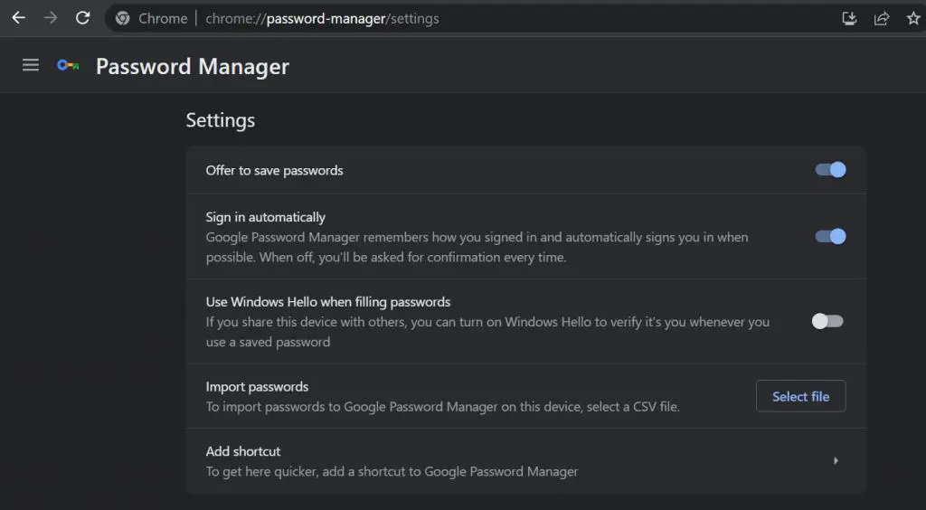 3. 找到 ” 自动填充和密码 “,然后转到 Chrome 的密码管理器。您也可以通过在地址栏中键入 chrome://password-manager/ settings 直接访问它。