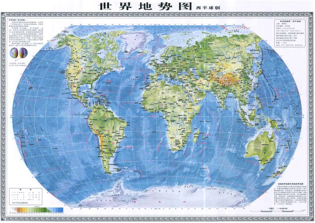 图7:竖版世界地图(北半球版)(郝晓光主编,湖南地图出版社2014年出版)