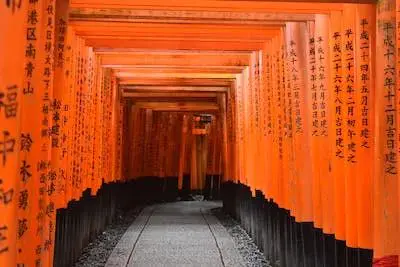 京都最为壮观的千本鸟居所在,供奉着保佑商业兴旺的狐狸神。走进千本鸟居,老朽褪色的暗红色牌坊和光鲜亮丽的朱红色牌坊密集地交织在一起,透过阳光的照射显得格外壮观迷人,给人以震撼的视觉体验。