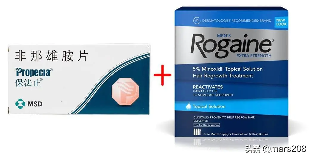 外用的米诺地尔,一般是一天2次涂抹脱发部位,可以打开钾离子通道,为毛乳头输送营养、恢复毛母细胞活力、促进毛囊生长。而口服的非那雄胺片(1mg),一天1片,可以降低血液中双氢睾酮(DHT)的剂量,从而防治脱发。以上这两种药物中,保法止(非那雄胺)是处方药,需要开处方才能拿药。米诺地尔常见的主要有:落健(美国进口,价格较贵),蔓迪、达霏欣、斯必申(国产)。非那雄胺(1mg)主要有:保法止(价格较贵)、启悦、仙琚、蓝乐。