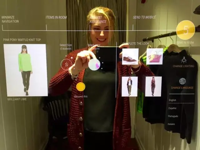 像操作触摸屏一样,通过镜面你可以控制试衣间的灯光亮度,选择不同的尺寸,浏览店内的服装,和还可以直接通过这面镜子与店员交流。