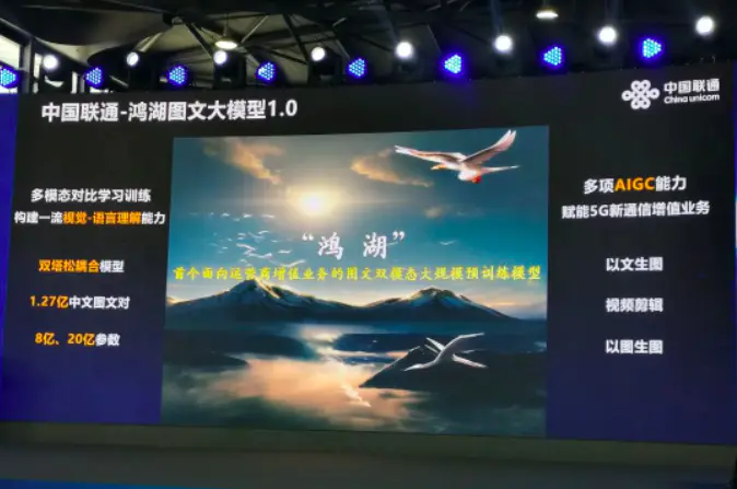 中国联通在上海世界移动通信大会期间就发布了Ai大模型:鸿湖图文大模型1.0。该模型1.0是首个面向运营商增值业务的AI大模型,目前拥有8亿训练参数和20亿训练参数两个版本,可实现以文生图、视频剪辑、以图生图等功能。