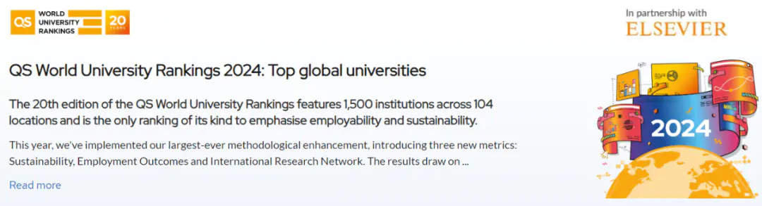 2024年QS世界大学排名于今日公布,该排名是全球高等教育领域的重要参考指标之一。