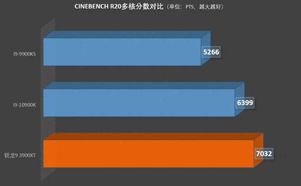这次装机所要用到的就是XT系列里面的旗舰级处理器,加速频率高达4.6GHz的锐龙9 3900XT。12核24线程的配置,不仅力压了与Zen 2架构同代的酷睿i9-9900KS,就连新一代的酷睿i9-10900K也跟它差了2个物理核心。因此在Cinebench R20的多线程分数上,它更是一枝独秀,7032 pts的分数位居前列。