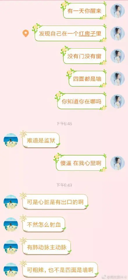 2:这个……我怕冒鼻血,在打开朋友圈前先把纸巾准备好。(聊天套路)